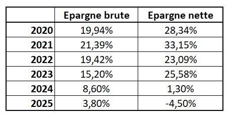 Avez-vous un plan « B » pour le futur Monsieur le Maire ?? La commune reste au-dessus de l’endettement moyen des villes de même taille : 1 359 euros par habitant face à une moyenne en France de 986 euros par habitant dans les communes comparables (chiffres 2024). Rappelons que les ratios financiers de la ville n’étaient pas bons en 2024, en dessous de la moyenne nationale. Cela faisait 10 ans que ce n’était pas arrivé ! Et au lieu de calmer le jeu en 2025 et de commencer une cure d’austérité, vous repartez avec des projets préélectoraux plein les poches et un nouvel emprunt ! Une stratégie risquée quand les finances publiques sont déjà sous tension. Résultat : ces ratios deviennent catastrophiques en 2025.