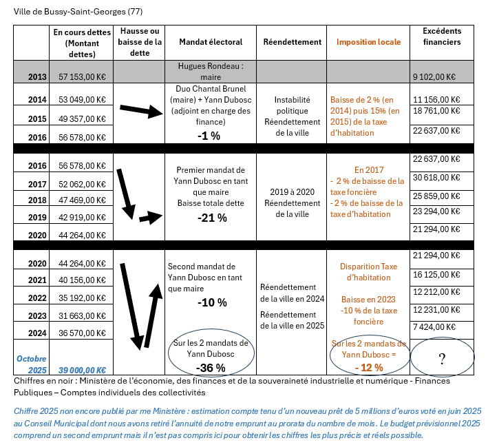 - Première surprise : pourquoi remonter à 2013 pour parler d’un bilan 2020–2026 ? Parce que qu’à l’époque c’était vraiment pire ?? Ou parce que restreindre le bilan au second mandat de Yann Dubosc n’est pas vraiment positif ?