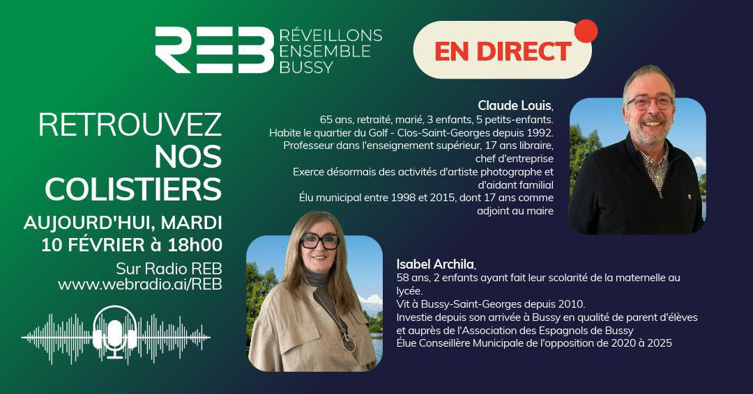 Dans cette émission, Isabel Archila et Claude Louis, colistiers de Harald Poillot de la liste Réveillons Ensemble Bussy, exposent une parole engagée pour Bussy Saint-Georges :