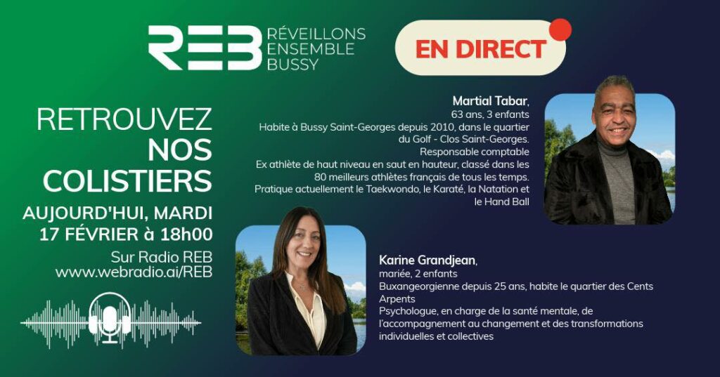 Dans cette émission, Karine Grandjean et Martial Tabar, colistiers de Harald Poillot de la liste Réveillons Ensemble Bussy, exposent une parole engagée pour Bussy Saint-Georges :