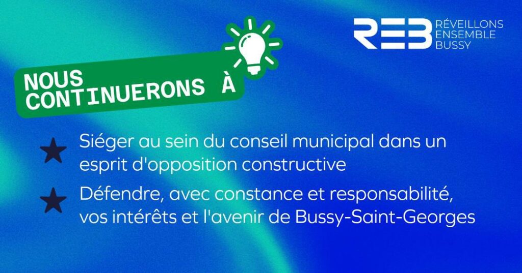 – Nous continuerons à siéger au sein du conseil municipal avec détermination, dans un esprit d’opposition constructive : vigilants lorsque cela sera nécessaire, force de proposition lorsque cela sera utile, et toujours guidés par l’intérêt général.